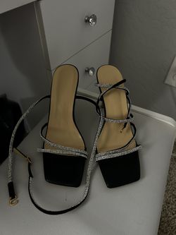 black and silver strappy heels $10Phoenix, AZ