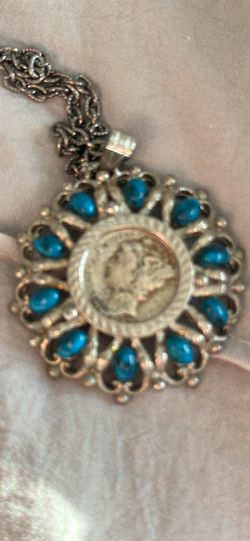 Vintage Sterling & Turquoise Mercury Dime Pendant – ROMA – Southwestern Style Statement Piece$195Chula Vista, CA