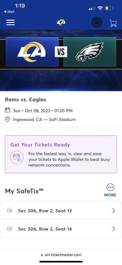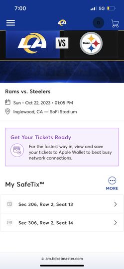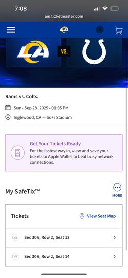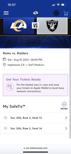 Rams/bills Tickets Nfl$300Los Angeles, CA