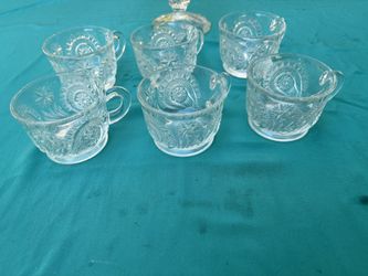Cups - 6 pieces 2” tall, 3” diameter. Sandwich clear glass compote pedestal bowl H9”, Diameter 6.5”$30Boca Raton, FL
