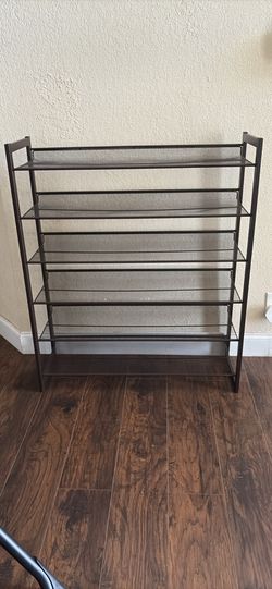 Shoe Rack-organizer. Metal made . H43, W36”, Deep12”. STURDY. 6 shelves. Dark Brown. No rust , Clean. $35Boca Raton, FL