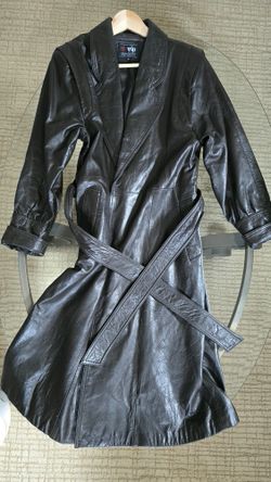 Leather coat womens long sz. M brown$25Fort Worth, TX