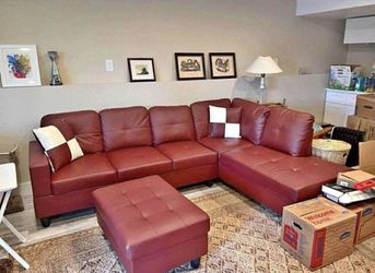Red Leather Sectional Couch And Ottoman$650Burien, WA