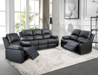 Black leather fully reclining three piece couch set$1,200Seattle, WA
