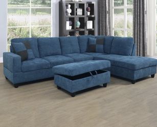 Blue Linen Sectional Couch And Ottoman$650Burien, WA