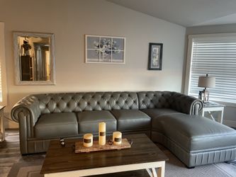 Stone Gray leather sectional couch and ottoman$700Covington, WA
