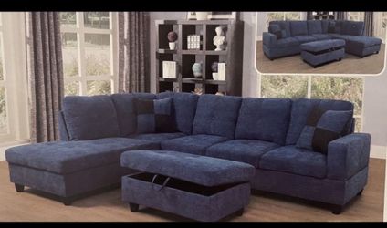 Blue microfiber sectional couch and ottoman$700Covington, WA