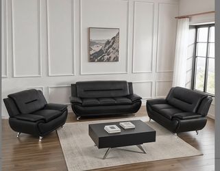 One Day Sale !Modern Style Black Leather Three Piece Couch Set$750Burien, WA