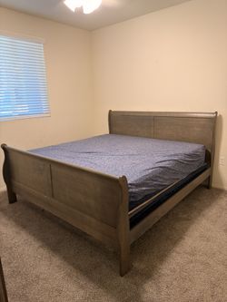 King bedroom set in good condition. Includes king bed frame (headboard, footboard, rails), dresser with mirror, and 5-drawer chest.$400Riverside, CA