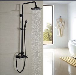 Brass Black Shower set Faucet Dual Handles Mixer Tap / Bath 8" Round Rain $125Riverside, CA