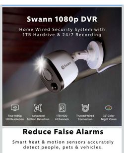Swann Home/Business Wired DVR, 1080p Full HD Security Camera System, 8 Channels, 8 Cameras Indoor/Outdoor, 1TB HDD Storage, Color Night Vision, Sensor$375Chino, CA