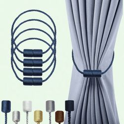 8 Blue Magnetic Curtain Tiebacks, Modern Rope Tiebacks for Curtains