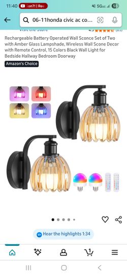 Rechargeable Battery Operated Wall Sconce Set of Two with Amber Glass Lampshade$50Chicago, IL