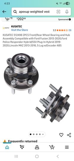KUSATEC 512498 2PCS Front/Rear Wheel Bearing and Hub Assembly Compatible with Ford Fusion 2013-2020$60Chicago, IL