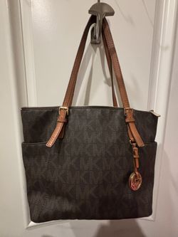 Michael Kors Jet Set Medium Logo Pocket Tote Brown Signature$50Riverside, CA