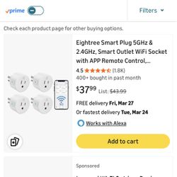 Eightree Smart Plug 5GHz & 2.4GHz, Smart Outlet WiFi Socket with APP Remote Control, Compatible with Alexa & Google Home, 4 Packs$20City Of Industry, CA