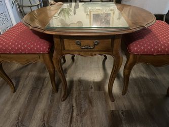 Ethan Allen Table With Folding Leaves And 2 Red Cushion Stools$450Avondale, AZ