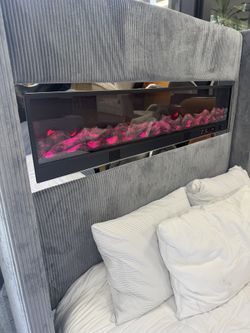 ‼️New Sumter grey fabric wingback design upholstered queen bed with TV lift and fireplace and Bluetooth speakers and USB$1,250Lynwood, CA