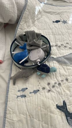 Pottery Barn Crib Boy Whale Set ( Blanket, Crib Skirt And Crib accessories)$100Montclair, CA
