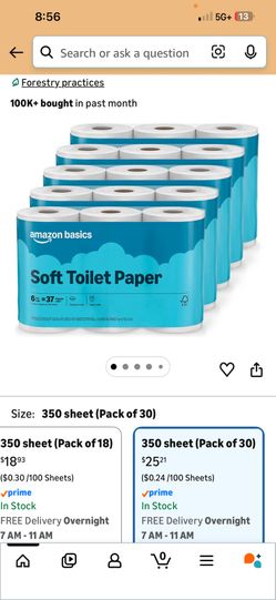 Amazon Basics FSC-Certified 2-Ply Septic-Safe Toilet Paper, Soft, 350 Sheets per Roll, 30 Rolls$20Wilmington, MA