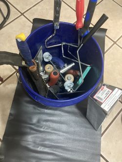 Bucket With Flooring Trowel ,scrapers ,paint rollers,mud Pan$50San Antonio, TX