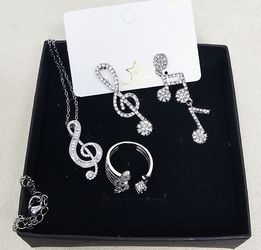 Set Of 3 Music note Necklace Earrings Ring Silver Toned$10Fremont, CA