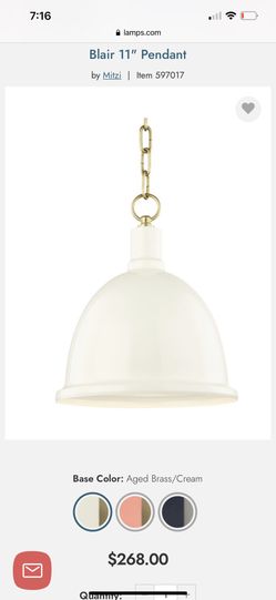 Mitzi by Hudson Valley Lighting H238701S-AGB/CR 1 Light Small Pendant in Aged Brass/Cream / Quantity: 2$100Newport Beach, CA