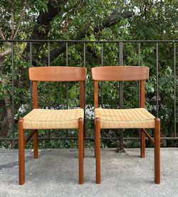 Vintage Teak & Paper Cord Danish Modern Mid Century Modern Set of 2 Dining Chairs$400Highland Park, CA