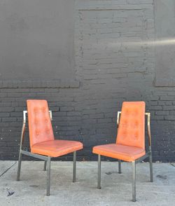 Vintage Mid Century Modern 1970s Milo Baughman Style Chrome & Pink Vinyl Set Of 2 Dining Chairs Lounge Chairs $350Los Angeles, CA