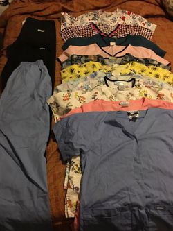 Cute: 11 scrub shirts and 3 pants size small$50San Antonio, TX