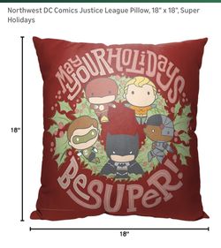 Northwest DC Comics Justice League Pillow, 18" x 18", Super Holidays$15Apple Valley, CA