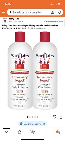 Fairy Tales Rosemary Repel Shampoo and Conditioner Duo, Kids' Favorite Scent Pack of 2, Lice Deterrent$25Apple Valley, CA