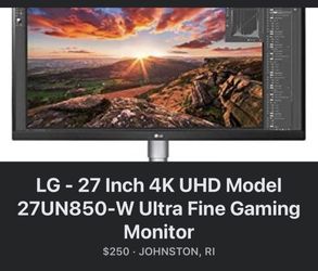 LG - 27in 4K UHD Model 27UN850-W Ultra Fine gaming monitor$250Providence, RI