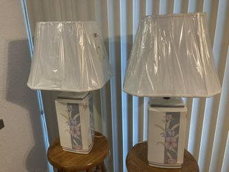 PAIR ART DECO DESIGNER MRRAY FEISS TABLE LAMPS/OBLONG NEW SHADES 3 WAY SWITCH Plus A Third Smaller Lamp$120Rancho Mirage, CA