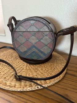 Handcrafted Round Leather Crossbody Bag Geometric Design$15Oro Valley, AZ