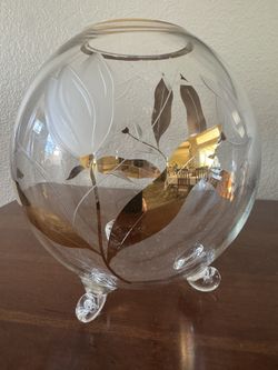 Vintage Bohemia Crystal Rose Bowl Vase With Gold Leaf Trim$15Oro Valley, AZ