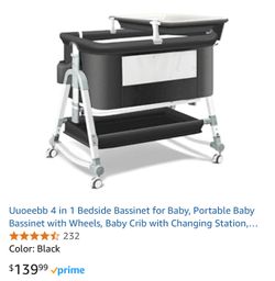 4 in 1 Bedside Bassinet for Baby, Portable Baby Bassinet with Wheels, Baby Crib with Changing Station, Mattress Included and Storage, Foldable Travel $80Crystal City, CA