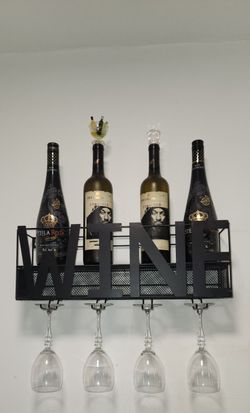 Wall-Mounted Black Metal Wine Rack w/ 'WINE' Cutout + 4 Glasses$10Los Angeles, CA