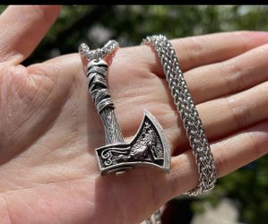 Mens Vintage Norse Viking Animal Raven Axe Wolf Pendant Necklace Chain$20Queens, NY