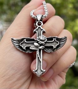 Gothic Mens Womens Christian Rosicrucian Rose Cross Pendant Necklace Chain$22La Gurda Arpt, NY
