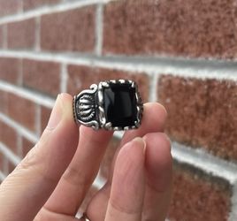 Size 9 Mens Natural Black Obsidian Crown Ring For Men Stainless Steel$17Queens, NY