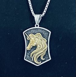 Cool Gold Plated Boys Girls Unicorn Horse Pendant Necklace Stainless Steel$22La Gurda Arpt, NY