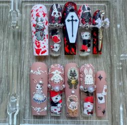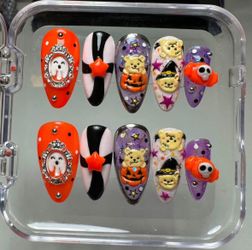 Beary Spooky Halloween Press On Nails Ghosts and Charms (Size Medium)$45Tracy, CA
