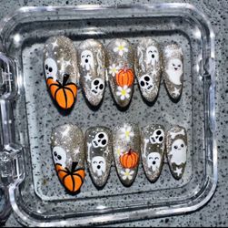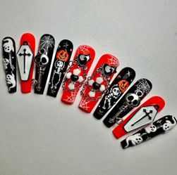 Black and Orange Halloween Press On Nails: with Ghosts, Skeletons and Nail Charms (Size Medium)$55Tracy, CA