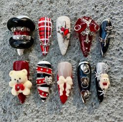 Handmade 3D Emo Grunge Press On Nails: Y2K Goth Almond Press On Nails (Size Small/Medium)$140Tracy, CA