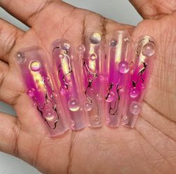 Tropical Pink Ombre Press On Nails: 3D Floral Zebra Print, Gold Accents (Size Medium)$45Tracy, CA