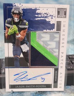 FOR SALE/NFT - 2025 SUPERBOWL CHAMPION SEAHAWKS JAXON SMITH NJIGBA PANINI IMMENSE PATCH/AUTOGRAPH CARD #IPA-JSN$205Redmond, WA