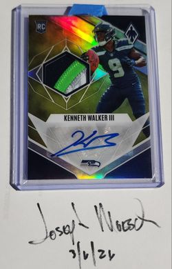 FOR SALE /NFT - 2022 PANINI KENNETH WALKER III PHOENIX YELLOW PRIME AUTO 3 CLR JERSEY PATCH #10/75 #RJA-KW$86Redmond, WA