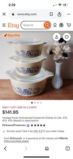 Vintage Pyrex Homestead Casserole Dishes & Lids (UTC Area)$100San Diego, CA