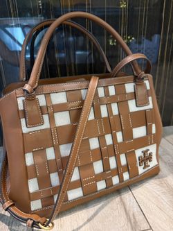 Tory Burch woven leather and canvas satchel handbag$170Pompano Beach, FL